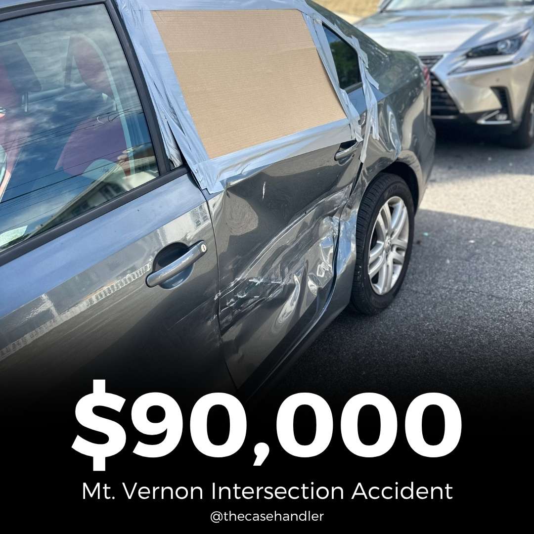 After the accident, Kayla was recommended to our legal team by a friend. A few days later, she contacted us and we immediately got to work. Less than a month after the crash, the defendant’s insurance company attempted to minimize Kayla’s injuries and offered just $10,000, pushing for a quick settlement. While we always strive to resolve our clients’ cases efficiently, we never rush the process until we know the full extent of their injuries and the best course of action to take. Thanks to the dedication of our experienced Mt. Vernon intersection accident lawyer, Kayla recovered $90,000 from the defendant’s insurance company!